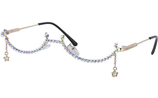 FASHION HALF GLASSES FRAME: Trendy metal frame no lens glasses with colorful rhinestone, diamond decor and star pendant, Fashionable Novel Style, It is suitable for Show Your Unique and Cool Attitude To Life.